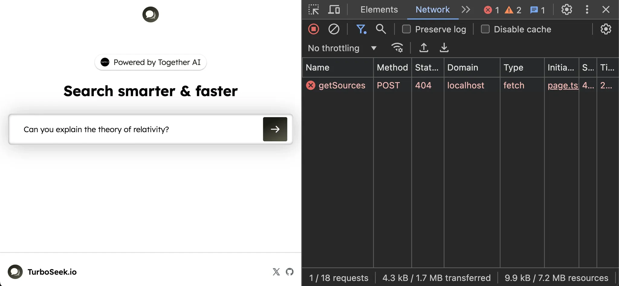 Now that our React app has the sources, we can send them to a second endpoint where we’ll use Together to scrape and summarize them into our final answer. Let’s add that second request to a new endpoint we’ll call/api/getAnswer, passing along the question and sources in the request body: