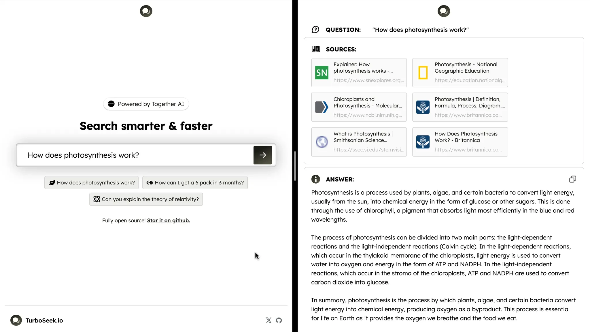 TurboSeek’s core interaction is a text field where the user can enter a question: