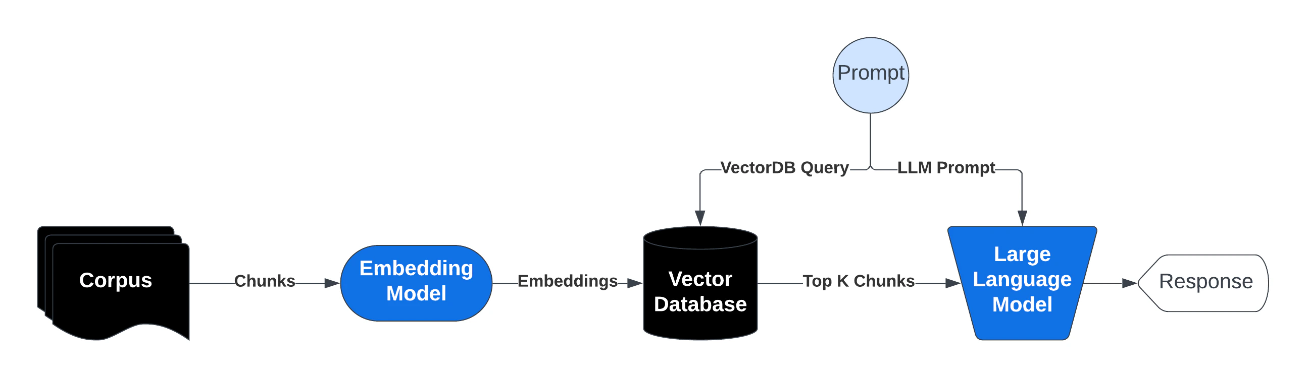 - Query Processing and Retrieval: When a user submits a prompt that would initially go directly to a LLM we process that and extract a query, the system searches the vector database for chunks semantically similar to the query. The most relevant chunks are retrieved and injected into the prompt sent to the generative AI model.