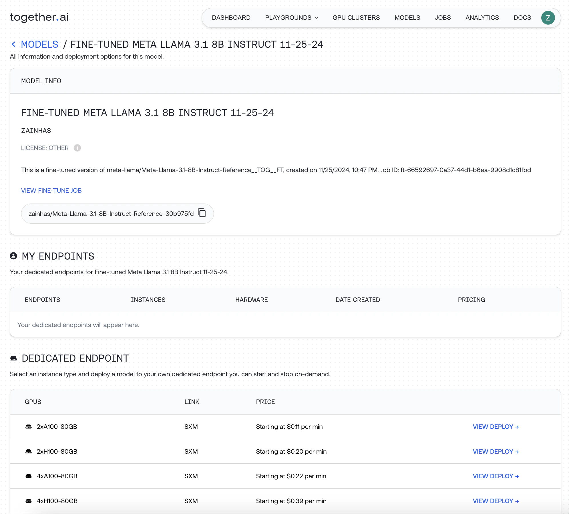 Once your fine-tune job completes, you should see your new model in your models dashboard: