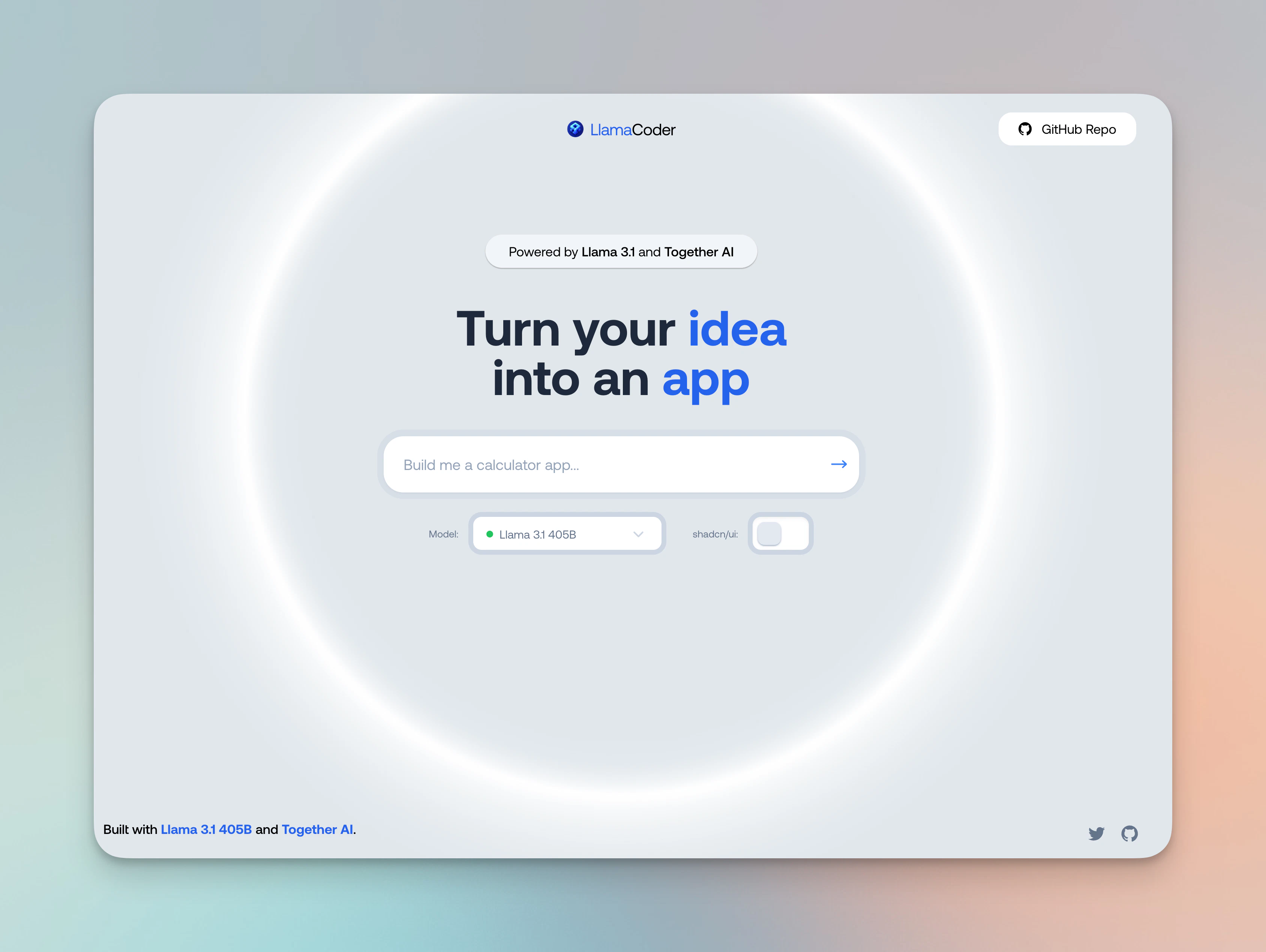 The core interaction of LlamaCoder is a text field where the user can enter a prompt for an app they’d like to build. So to start, we need that text field:
