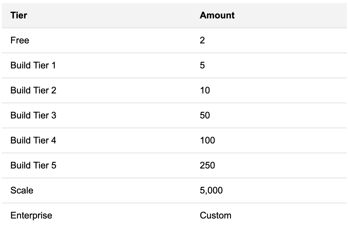 You are limited to the following number of LoRA adapters hosted based on build tier:
