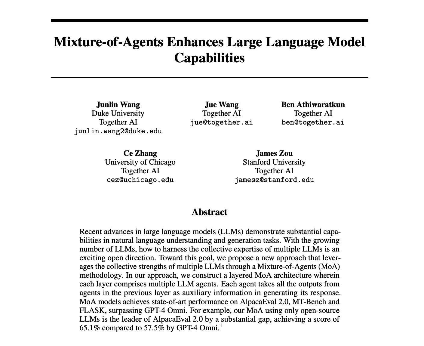 Here we will load in an academic paper that proposes the use of many open source language models in a collaborative manner together to outperform proprietary models that are much larger! We will use the text in the PDF as content to generate the podcast with!